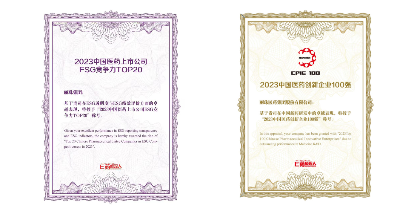 【会员风采】丽珠上榜2023中国医药上市公司ESG竞争力TOP20及中国医药创新企业100强