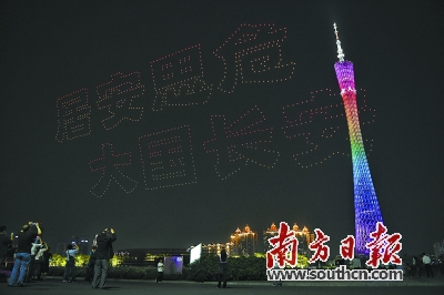 在现场,1300架次无人机编队展示了国安标识、宣传标语等多组图案,结合“一江两岸三桥”光影秀,开展国家安全主题宣传。记者了解到,4月11日至4月17日晚上7点30分至10点整,珠江水畔都将亮起美轮美奂的灯光秀,用光影的形式,向公众科普国家安全知识。